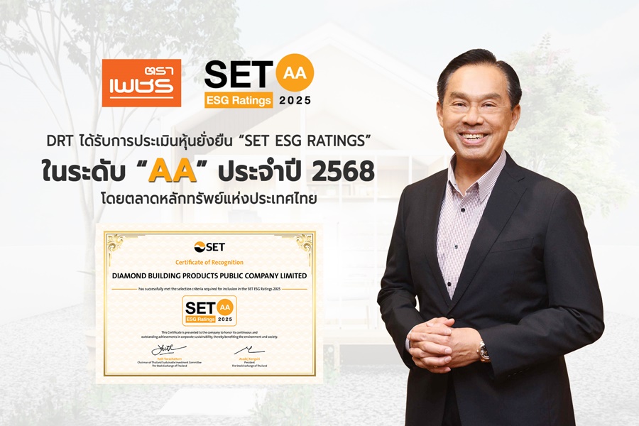 ***** ถือเป็นสิ่งสะท้อนถึงการดำเนินตามนโยบายด้าน ESG และมุ่งเน้นด้านความยั่งยืนอย่างเข้มข้นมาโดยตลอด ล่าสุดในการประเมินหุ้นยั่งยืน SET ESG Ratings ประจำปี 2568 โดยตลาดหลักทรัพย์ฯ ‘สาธิต สุดบรรทัด’ ซีอีโอ บมจ.ผลิตภัณฑ์ตราเพชร หรือ DRT นำบริษัทฯ ผ่านเกณฑ์การประเมินที่ระดับ “AA” กลุ่มธุรกิจอสังหาริมทรัพย์และก่อสร้าง ต่อเนื่องอีกปี ซึ่งเป็นผลมาจากการยึดมั่นในแนวทางการดำเนินธุรกิจควบคู่กับการใช้ทรัพยากรอย่างคุ้มค่า เพื่อลดผลกระทบต่อสิ่งแวดล้อม การดูแลสังคมและผู้มีส่วนได้เสียทุกฝ่าย ตลอดจนการยึดหลักการกำกับดูแลกิจการที่ดี และต่อต้านการทุจริตคอร์รัปชัน ส่งผลให้บริษัทฯ ผ่านการประเมินคะแนนในระดับสูงมาอย่างต่อเนื่อง ตอกย้ำการเป็นบริษัทจดทะเบียนคุณภาพ